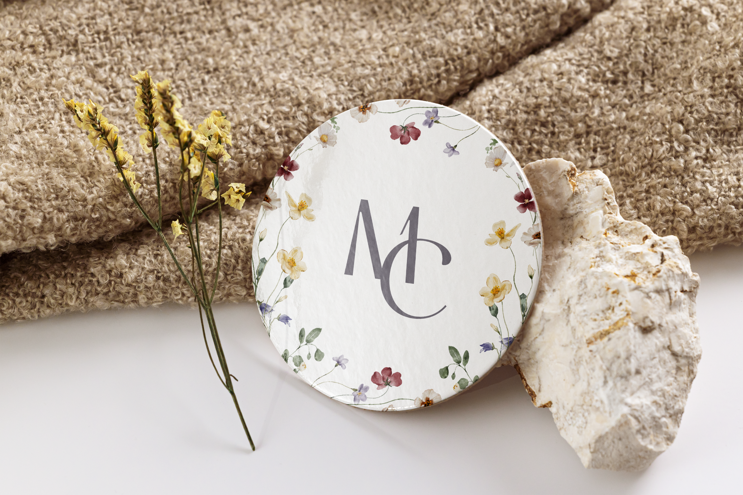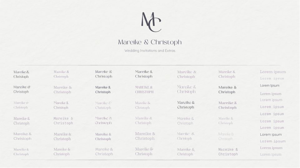 After selecting the fonts, I worked on finalising their logo, which is a combination of the first letters of their names, M and C. The idea behind this was, on the one hand, variability and non-repetition, and, on the other hand, expandability, we could use this logo for many more designs, such as stickers, wax seals or patterns.