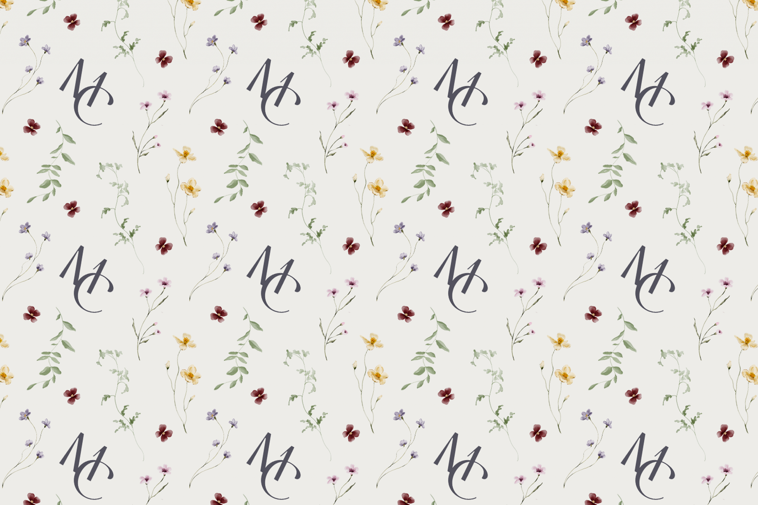 I enjoexyd the theme and easthetic of the wedding, making me wanting to keep working on it. So in addition to the invitations, I tried to create patterns in Photoshop containing the logo and the foral ornaments.